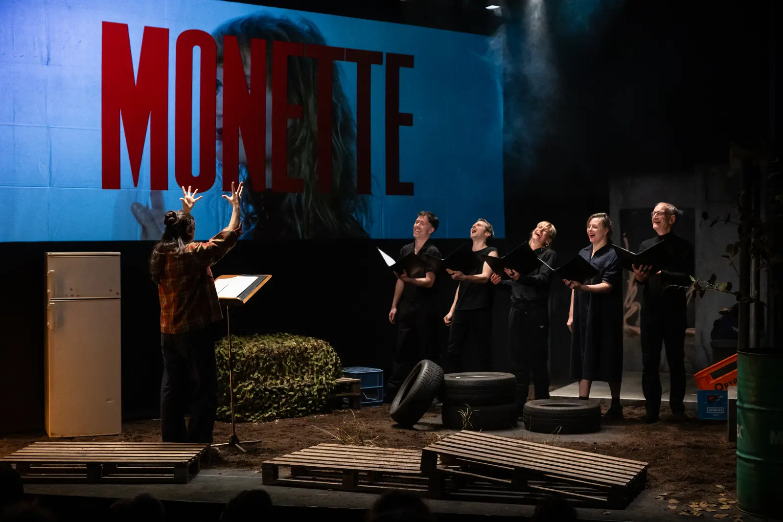 jeu sur scène Françoise Boillat, Angèle Colas, Yann Philipona, Dylan Poletti, Juliette Vernerey, Philippe Vuilleumier